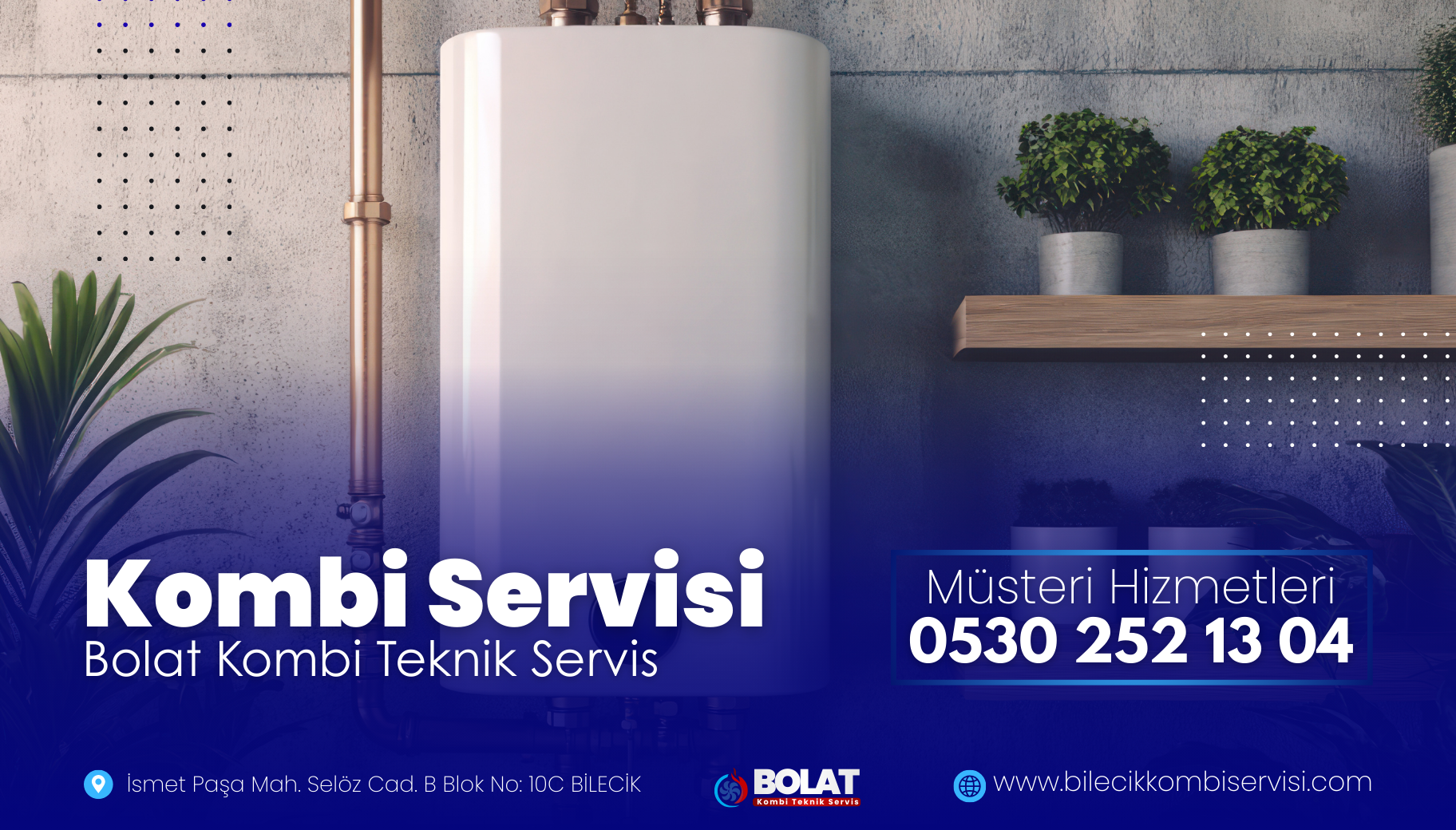 Bolat Kombi Teknik ekibi; arıza, bakım veya teknik destek talepleriniz için Bilecik genelinde hazır. Aynı gün servis imkanıyla hızlı ve garantili çözümler sunuyoruz.