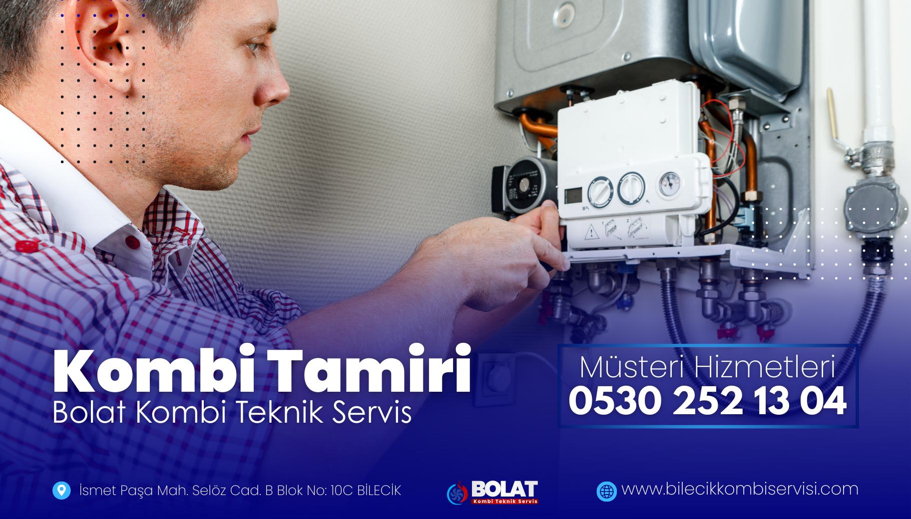 Bolat Kombi Teknik ekibi; arıza, bakım veya teknik destek talepleriniz için Bilecik genelinde hazır. Aynı gün servis imkanıyla hızlı ve garantili çözümler sunuyoruz.