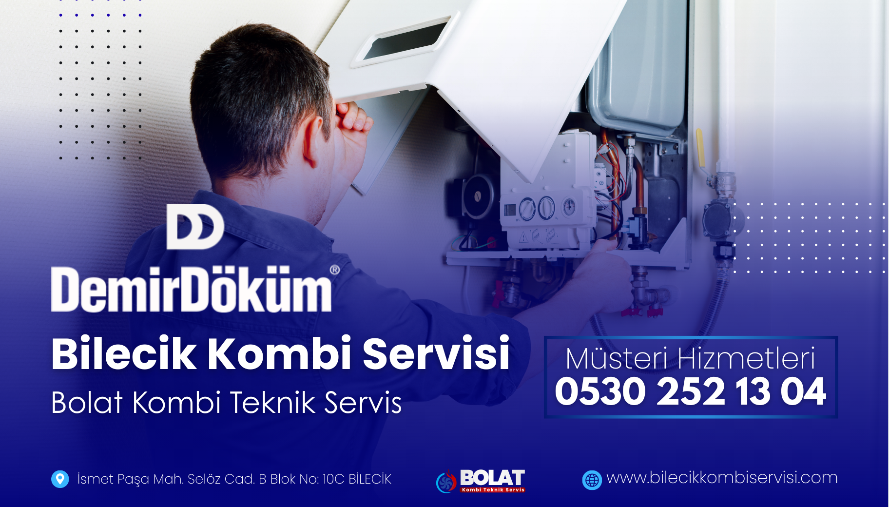 Bilecik Demirdöküm kombi servisi ihtiyaçlarınız için Bolat Kombi Teknik ekibine günün her saati ulaşabilirsiniz. Kombinizdeki performans düşüklüğü, teknik arızalar veya periyodik bakım talepleriniz için 0530 252 13 04 numaralı telefonumuz üzerinden randevunuzu oluşturabilir, profesyonel teknik destek sürecimizi hemen başlatabilirsiniz.